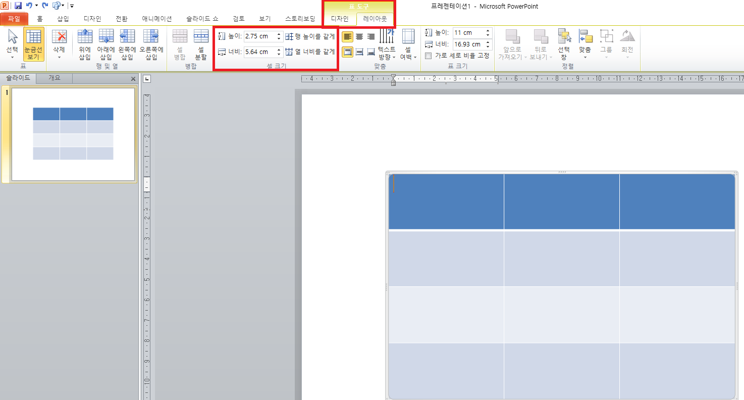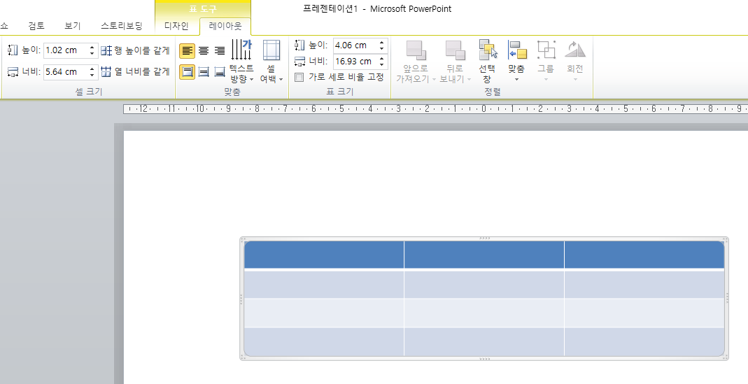 이번에 소개드릴 PPT 기능은 표 셀을 크기를 한꺼번에 줄이는 방법에 관해서 입니다.
