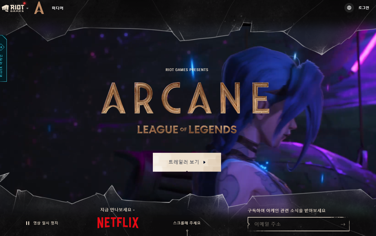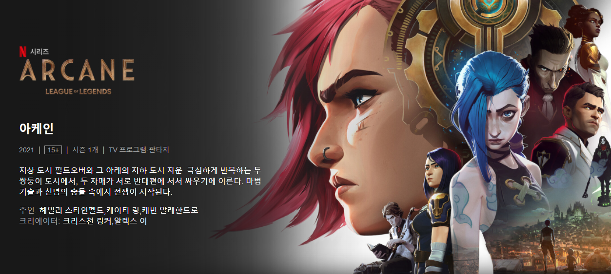 많은 게임 유저를 보유하고 있는 게임, 롤(리그 오브 레전드, LOL)의 애니메이션 아케인이 넷플릭스에서 시청 가능합니다.